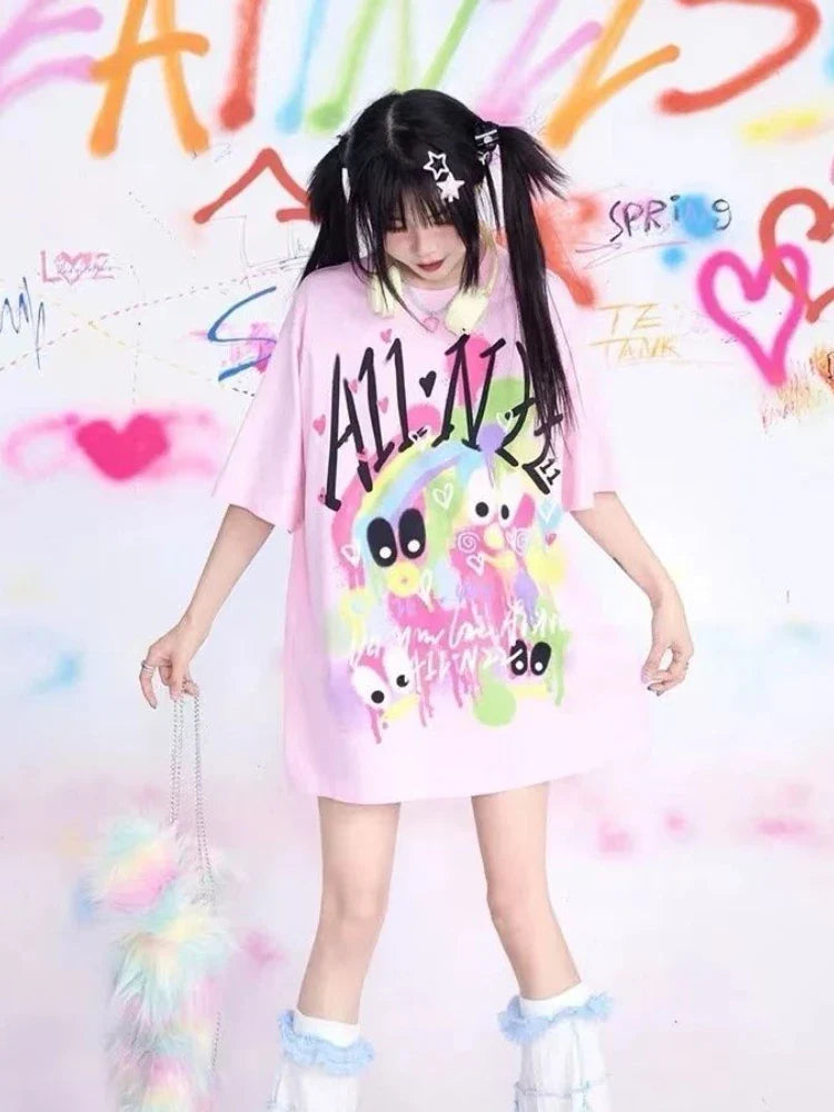 KOSAHIKI Pink Harajuku Graphic T-shirt