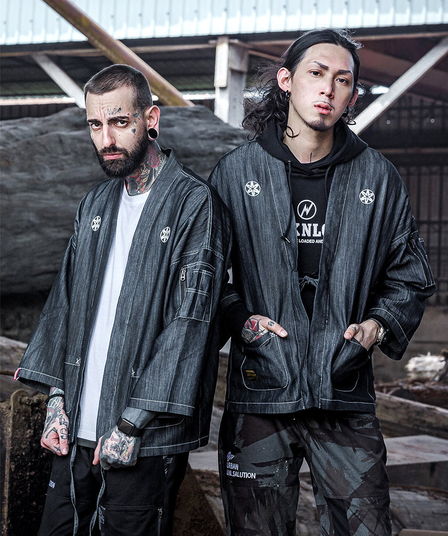 - Tie up Samurai Style Shirt with cool lotus symbols embroidery on front for Japanese Harajuku Style look