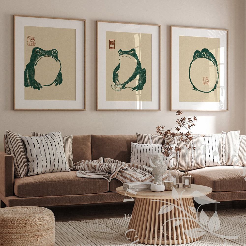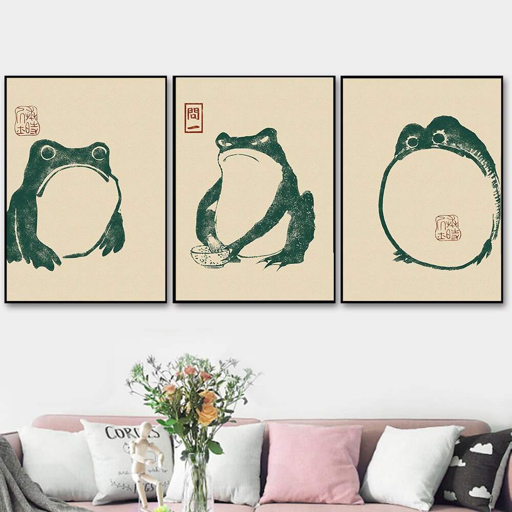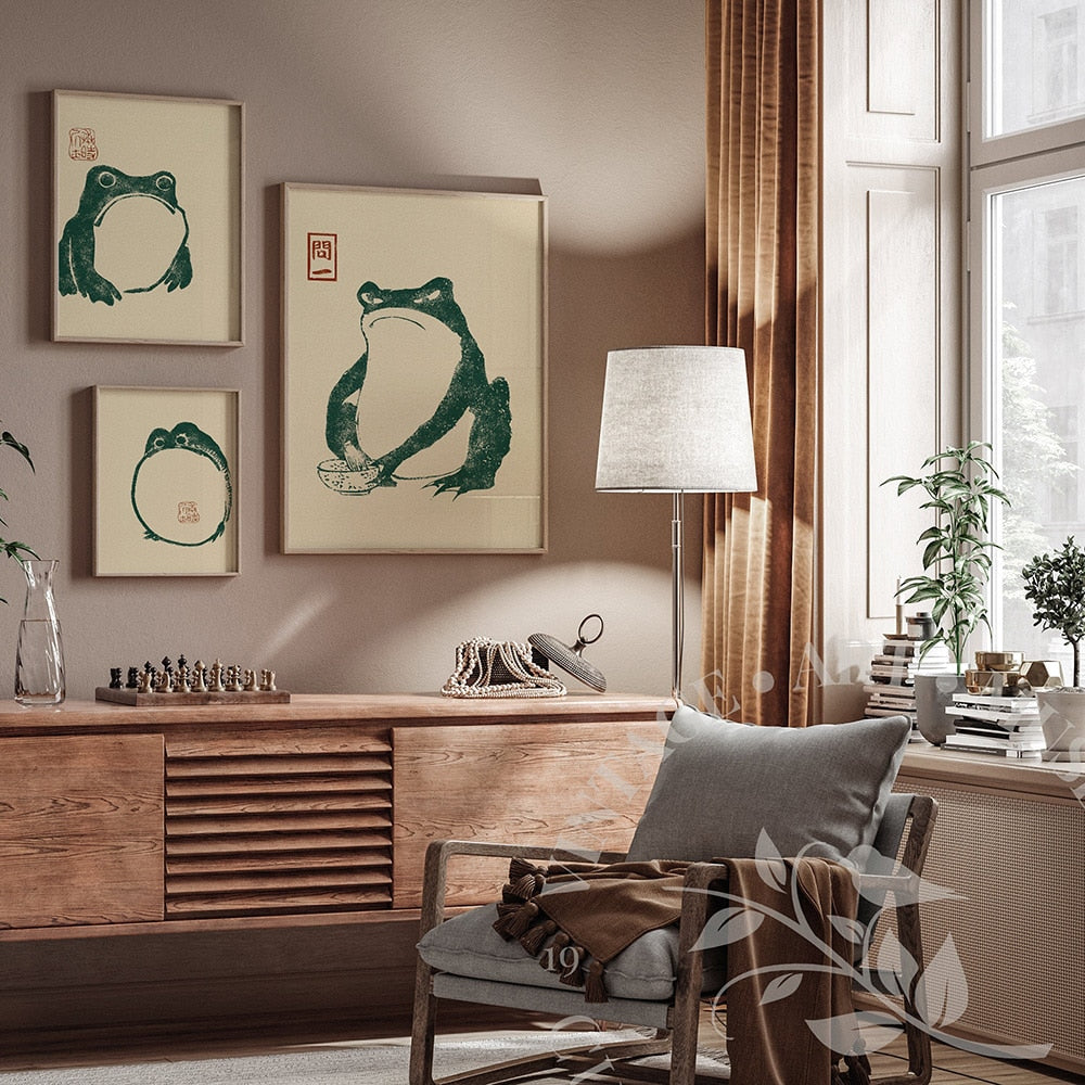 Transform your walls into a delightful visual experience with our Matsumoto Hoji Canvas Frog Posters.