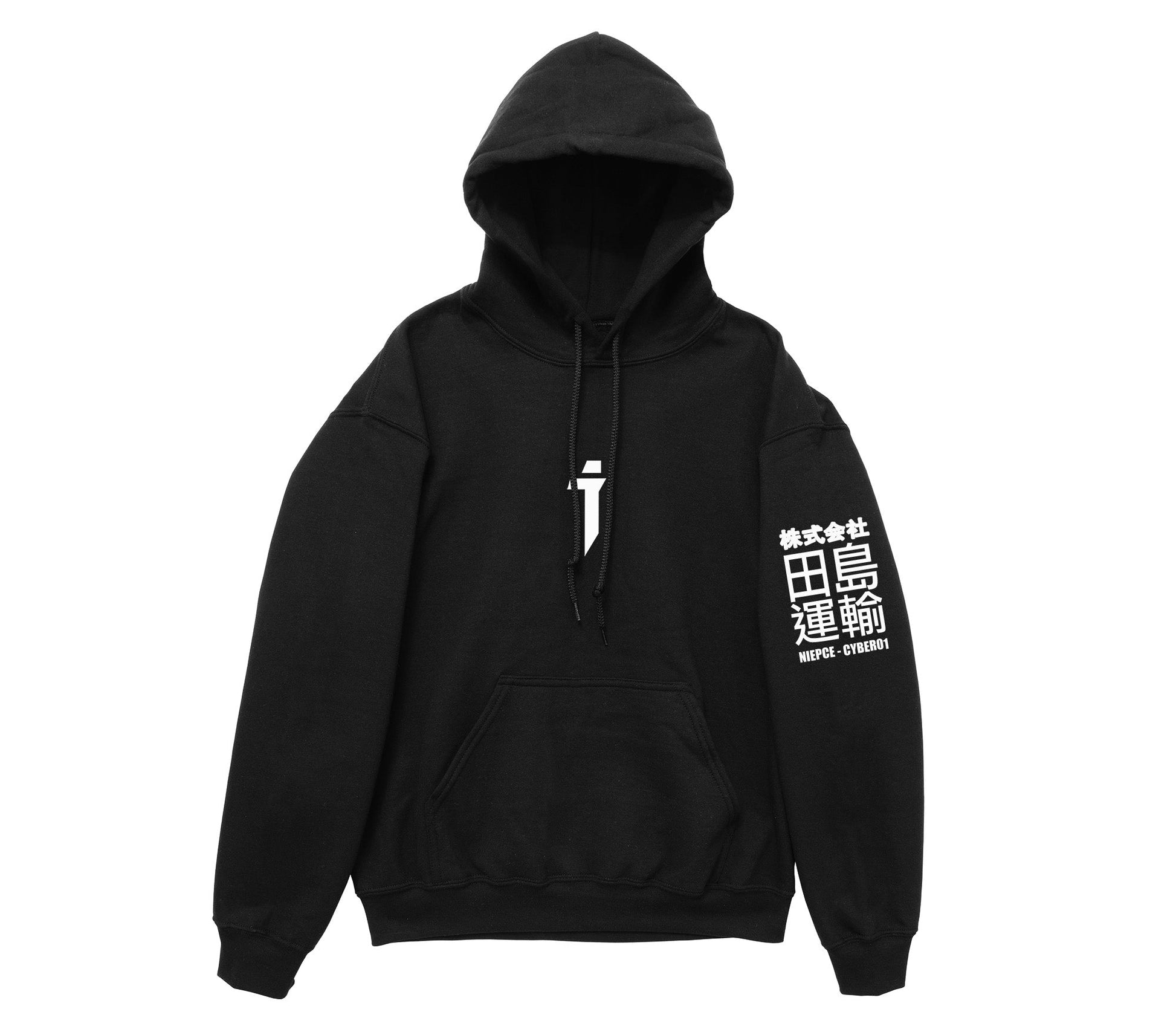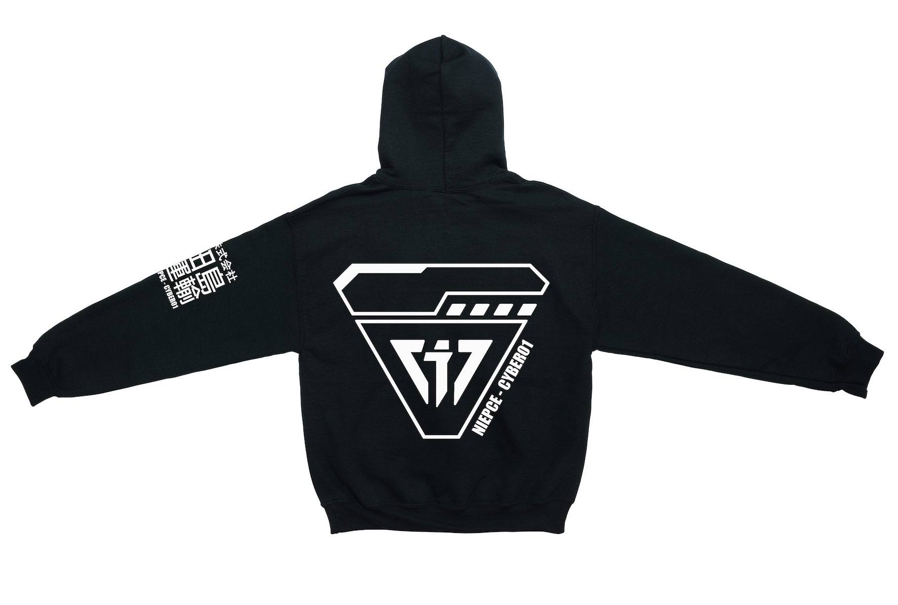 - Back side features a screen print Niepce cyberpunk machine part infused with our i-tech logo at the core