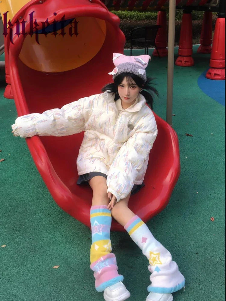 Wrap your legs in a dreamy display of color with our Pastel Stars Harajuku Leg Warmers – a fashion-forward and whimsical accessory that adds a touch of celestial charm to your style! These kawaii leg warmers feature a pastel star pattern, creating a magical and playful look inspired by Harajuku fashion. The soft and cozy material ensures warmth and comfort, making them a perfect addition to your outfits during cooler seasons.