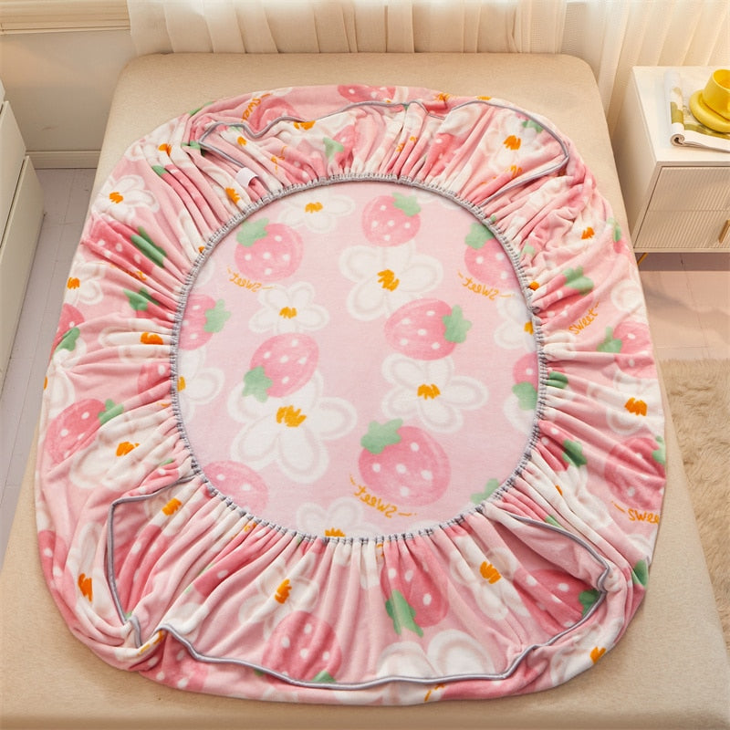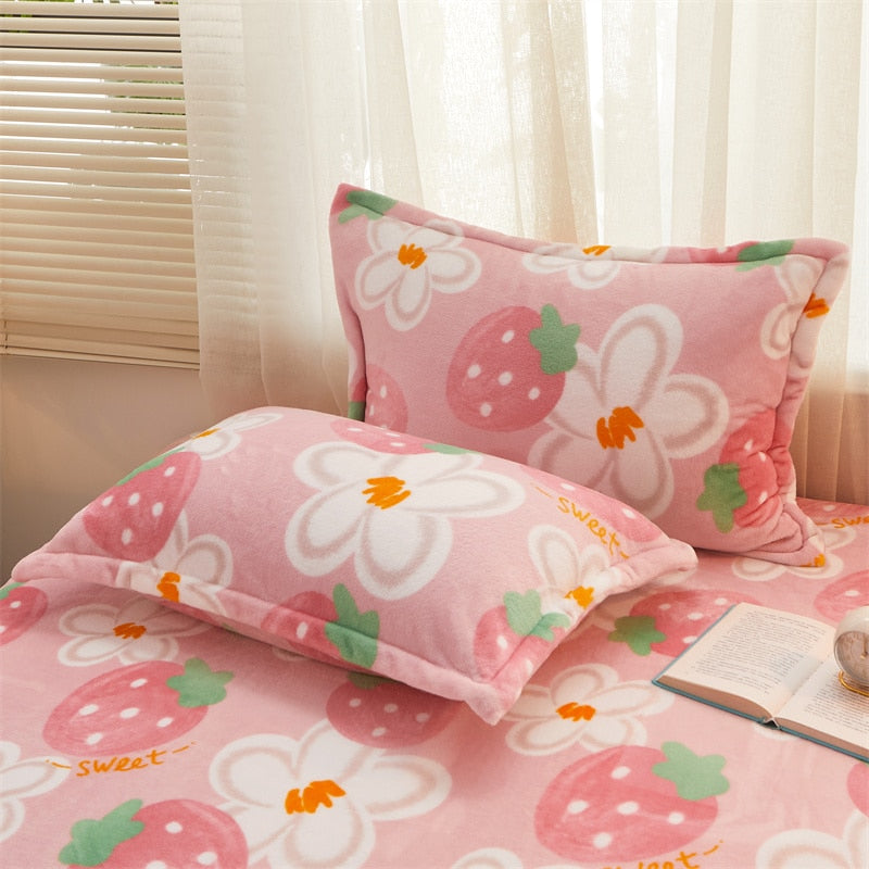 Experience the ultimate comfort and kawaii style with our Strawberry Flower Flannel Mattress Cover. This kawaii mattress cover not only enhances the comfort of your bed but also adds a touch of whimsy to your bedroom decor.