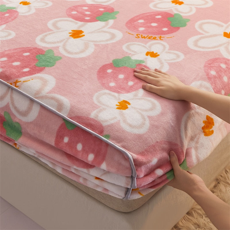 Upgrade your sleeping experience with the delightful charm of strawberries and flowers. Our Strawberry Flower Flannel Mattress Cover not only protects your mattress but also brings a smile to your face every time you enter your cozy sanctuary.