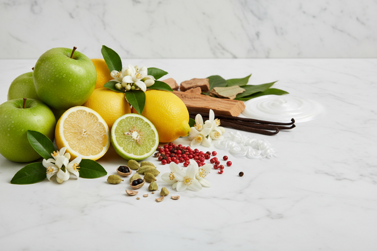 Top: Green Apple, Amalfi Lemon, Calabrian Bergamot, Orange Blossom | Heart: Guatemalan Cardamom, Pink Pepper, Jasmine | Base: Mexican Vanilla, Atlas Cedar, Patchouli, White Musk