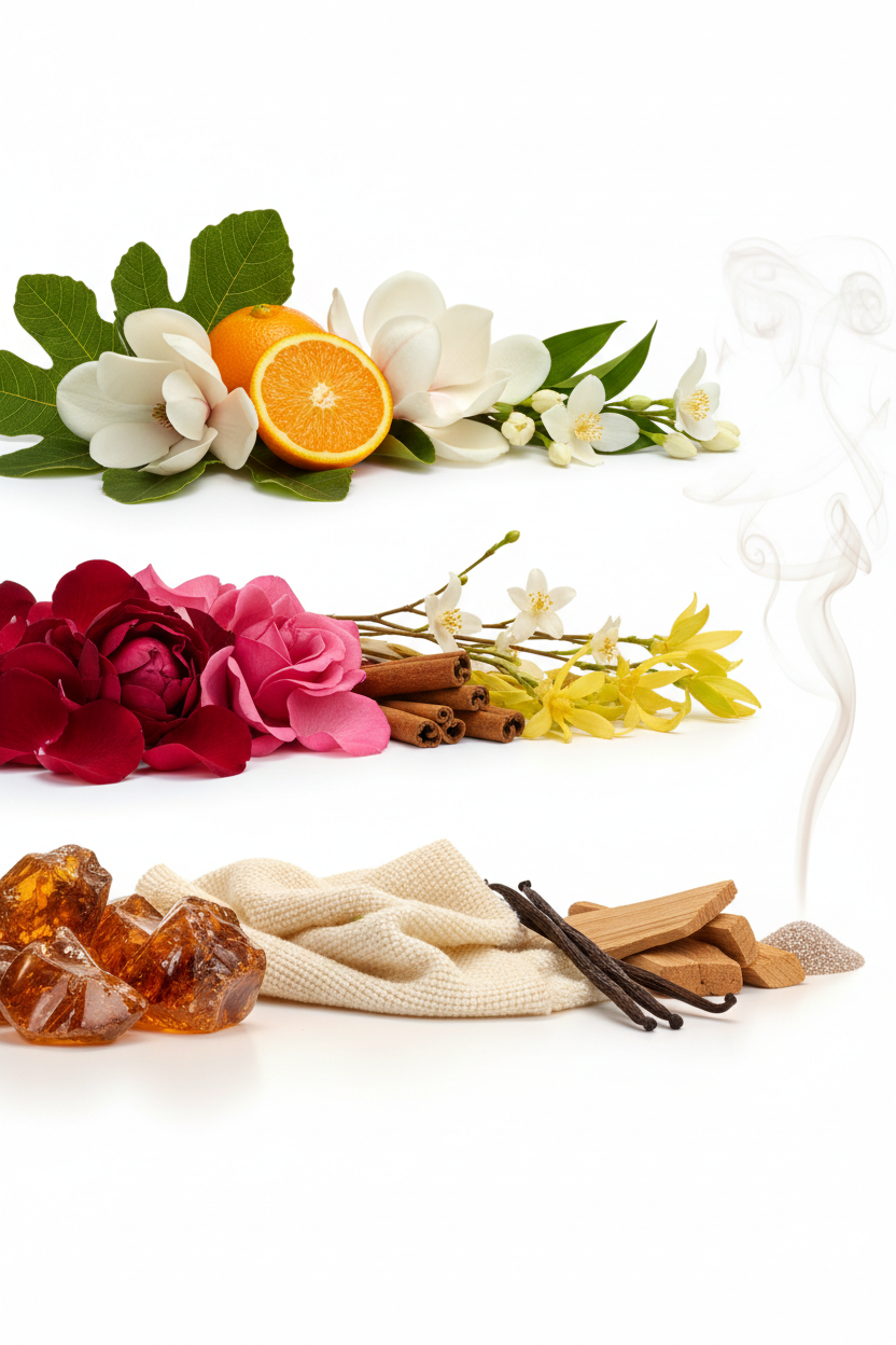 Top: Fig Leaf, Orange, Magnolia | Heart: Cinnamon, Ylang-Ylang, Indian Jasmine, Bulgarian Rose | Base: Sandalwood, Cashmere Wood, Vanilla, Amber, Incense